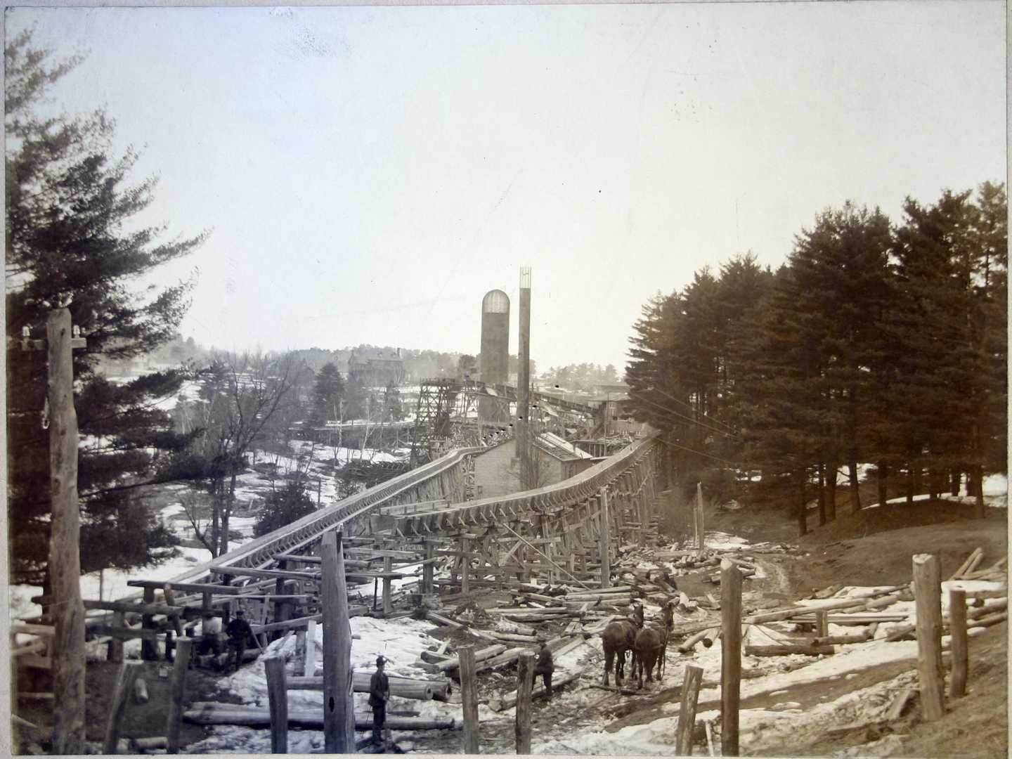 Glissoire de la scierie sur la rive est (coté avenue de Buckingham) vers 1890.